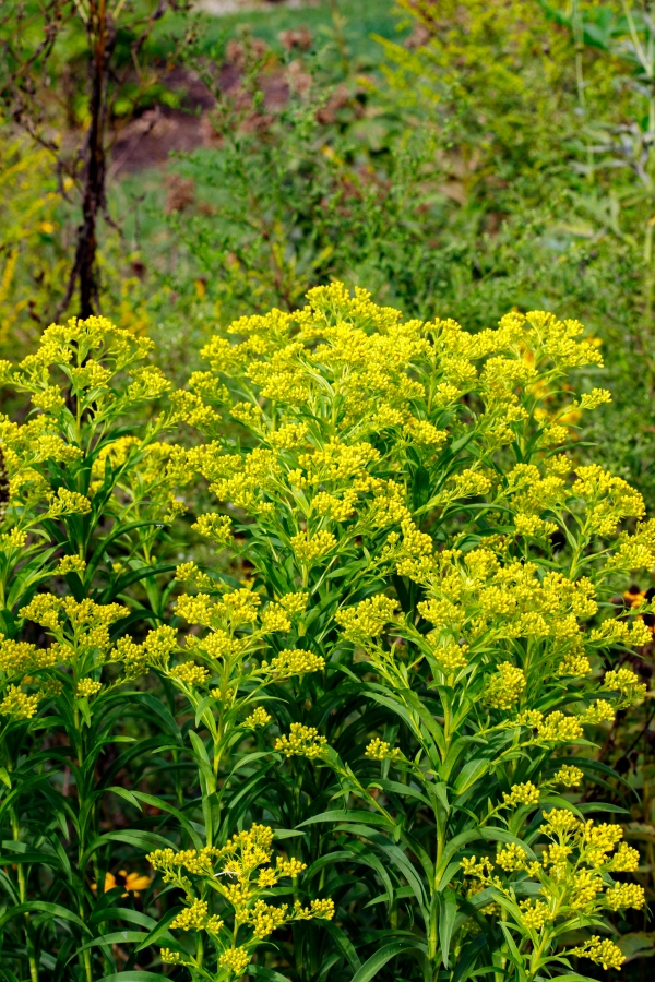 Asters and goldenrods are major actors at this time of the year in the native plant garden because of their high value as late season nectar sources for pollinators and migrating butterflies. Goldenrods are represented in three genera, listed here with the number of Ohio native species in each: Solidago (25), Euthamia (2), and Oligoneuron (4). Taxonomically, some of these plants, such as Oligoneuron rigidum (Stiff Goldenrod), have volleyed between these genera multiple times over the years. The Herb Society of America has a great resource on goldenrods, “Essential Guide to Solidago, Notable Native Herb™ 2017: An HSA Native Herb Selection.” Another very good resource is Goldenrods of Northeast Ohio: A Field Guide to Identification and Natural History.