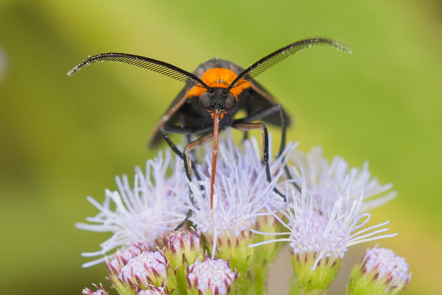 Grasses are host plants for a variety of skipper species (small butterflies). In their book Gardening for Moths, McCormac and Gottfried note there are 30 skipper species in our region and they give particular note to Peck’s and Zabulon Skippers (p. 121). (4) They also list a wide variety of moths that use grasses as hosts, two of which are the Virginia Ctenucha and Yellow-collared Scape moth. Various Lepidoptera websites indicate that the Common Wood Nymph butterfly is a grass generalist.