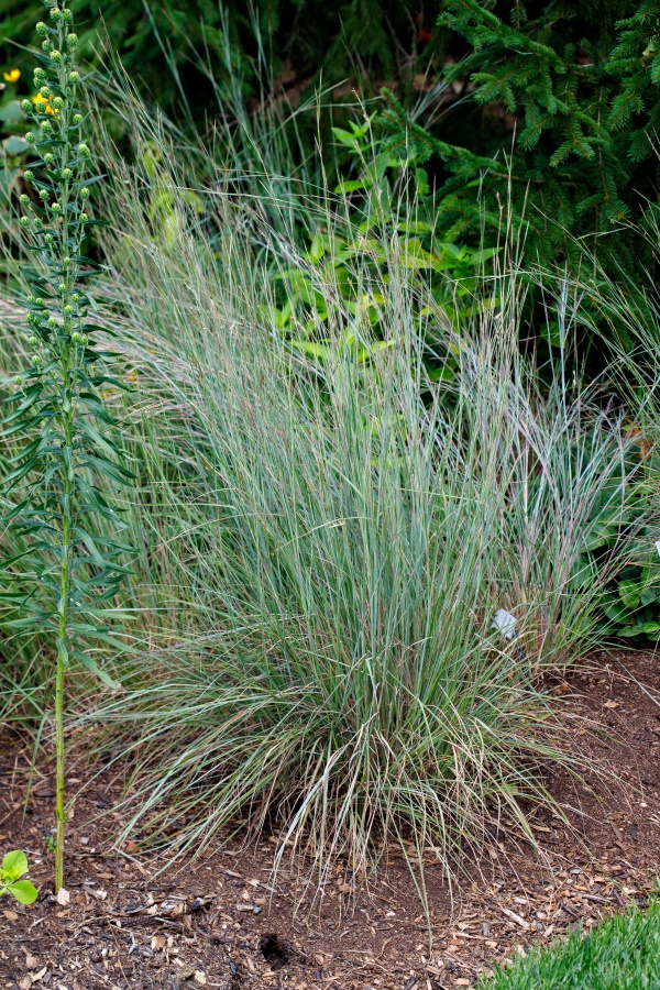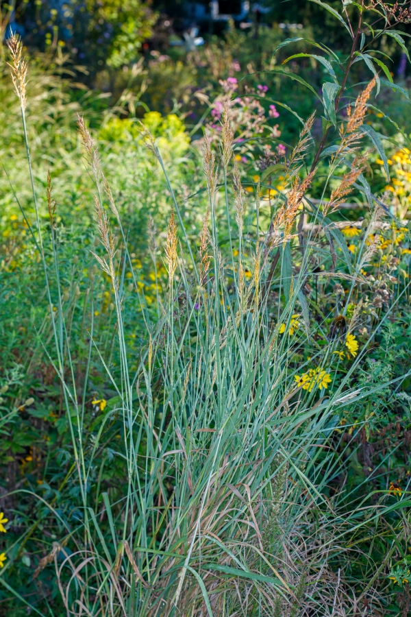 If your landscape design is intended to resemble a prairie, grasses are central. According to the University of Minnesota Extension, “[p]rairies consist of 80 percent grasses and sedges and 20 percent wildflowers or forbs.” (1) In a prairie-like design, forbes (flowering plants) punctuate a mostly grass planting. Indian Grass and Big Bluestem are typically associated with tall grass prairies. But depending on site conditions, prairies may have other grasses like Little Bluestem, Switchgrass, Prairie Cordgrass and Prairie Dropseed. (2)