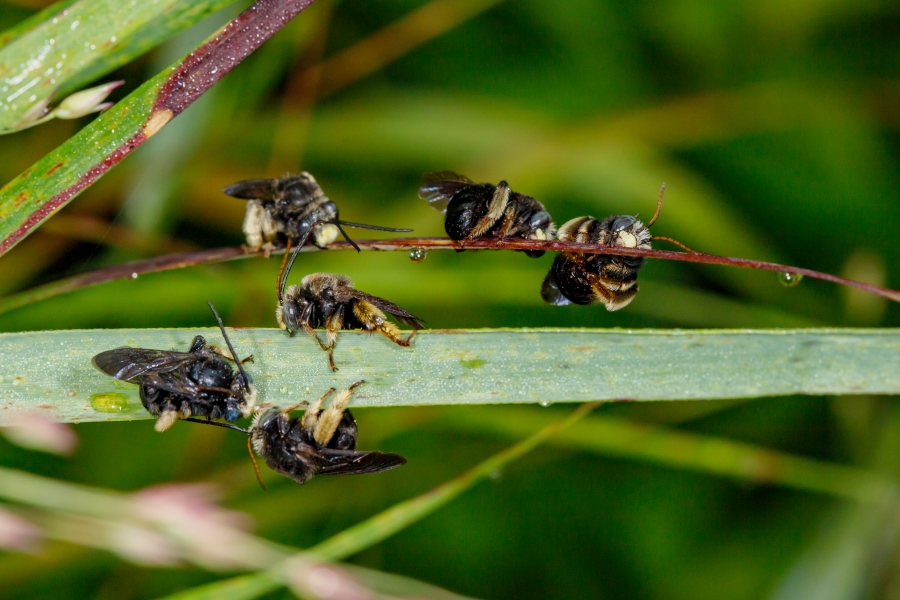 Some male Longhorn Bees have a habit of hanging out together overnight and in our landscape that usually happens on switchgrass.