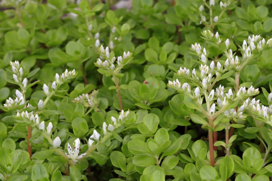 Wild Stonecrop is native to much of the eastern U.S. In Ohio it can be seen in many of the outstanding state nature preserves managed by ODNR. In such natural sites, it can grow in challenging spots such as in rocky outcrops, as well as on the forest floor and right up against tree root flares. It grows to 8 inches, and that’s if you include the starry-plumed bloom stalks. Individual stems of sedum ternatum can be planted in a bed and with enough organic material in the soil, it will quickly spread into an attractive mat. It can be distinguished from other sedums by leaf arrangement in whorls of three.