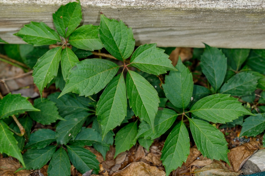 This groundcover is a woody vine and suitable for large spaces as it grows at a steady pace and can cover other plants and surfaces. Despite its aggressive nature, it comes recommended because of the ecoservices it provides. Birds eat the berries, and nectar and pollen feed various bees, including leaf-cutting bees which may use leaflets as construction material for their larval nests. The larvae of several moths, especially sphinx moths, feed on Virginia Creeper. This groundcover has brilliant fall color.