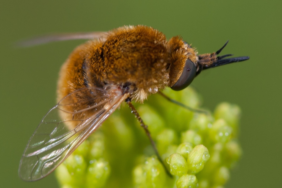 Pollination. Adult hover flies, bee flies, midges, and tachinid flies seem most often referenced as pollinators since they visit flowers for nectar. Bees are generally the gold standard for pollinators. Flies are not as efficient, largely because they are not as hairy as bees. While some flies like tachinids may consume pollen, they are not intentionally gathering it and moving it from place to place like bees.