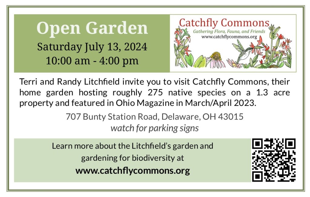 Terri and Randy Litchfield invite you to visit Catchfly Commons, their home garden hosting roughly 275 native species on a 1.3 acre property and featured in Ohio Magazine in March/April 2023.