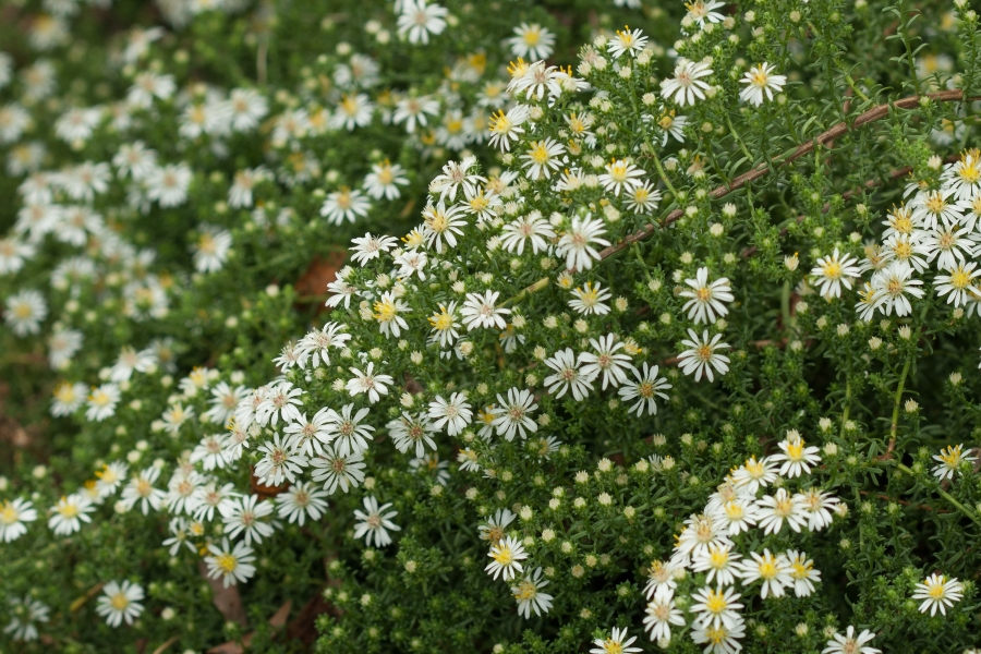 The asters include Aromatic, Blue Wood, Crooked Stem, Flat-topped, New England, Short’s, Sky Blue, Smooth, ‘Snow Flurry’ Heath, and Willow.