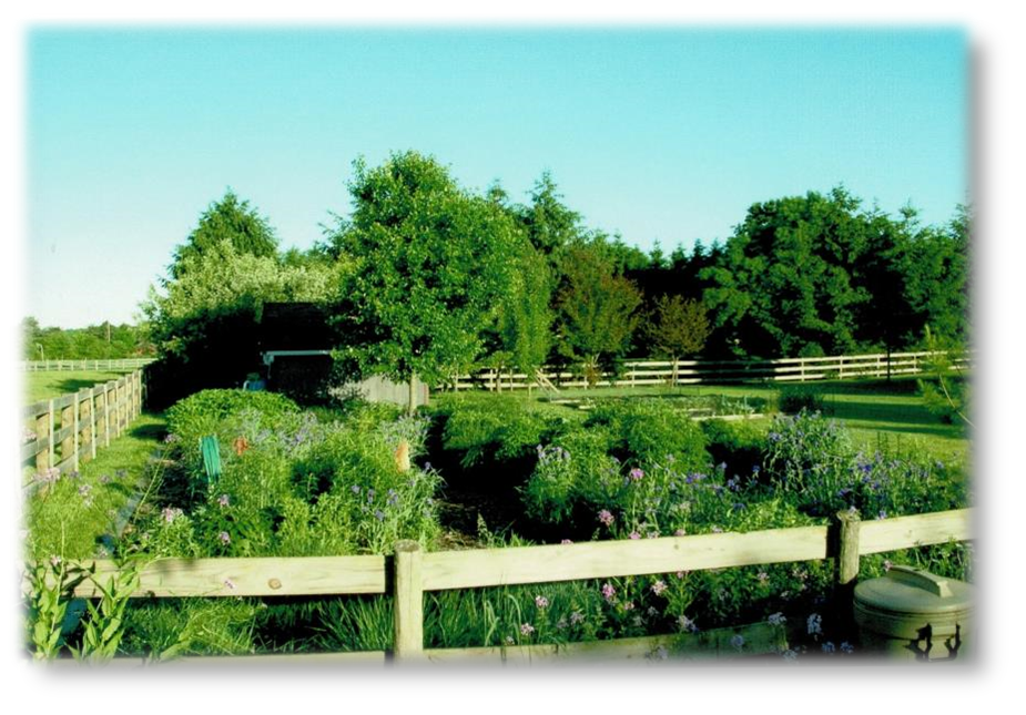 This is early summer after three years. Note that the plants in the newer beds on the left have caught up with those in the original raised beds to the right.